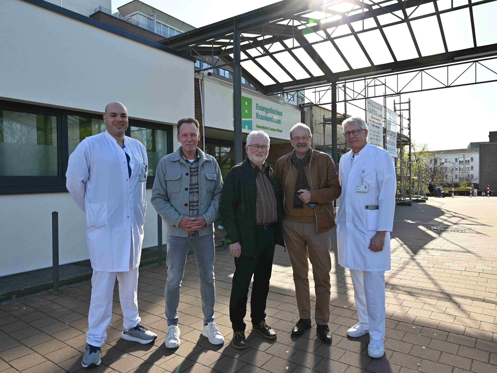 Als Thorsten Tophinke eine Woche nach dem Eingriff erneut ins EVK kommt, klingt in seinen Worten vor allem Erleichterung an. Der 60-Jährige hatte sich jahrelang mit den Beschwerden durch den Alltag bewegt, vieles gemieden, sich beim Essen zurückgenommen und die Einschränkungen irgendwann fast als normal hingenommen. Bei ihm wurde der Reflux durch eine rund vier Zentimeter große Zwerchfellhernie ausgelöst. „Ich habe mich lange gequält und fühle mich jetzt zum ersten Mal auf einem wirklich guten Weg.“ Noch nimmt er Säureblocker, noch bleibt er bei der Ernährung vorsichtig, aber die Beschwerden sind zunächst verschwunden – und das ist für ihn nach Jahren schon viel. Sein Fall ist aber nicht nur für ihn persönlich, sondern auch für seine behandelnden Ärzte etwas ganz Besonderes: Der Neukirchen-Vluyner erhielt eben jenen Hybrid-Eingriff aus Endoplikatio und robotisch-assistierter Operation, der in den USA zwar bereits zu den Leitlinienempfehlungen gehört, in Europa nun aber erstmals durchgeführt wurde. Das Team um Dr. med. Olaf Hansen, Chefarzt der Klinik für Allgemein-, Viszeral- und Onkologische Chirurgie, versorgte dabei zunächst die große axiale Zwerchfellhernie robotisch assistiert, während Mahmoud Arfa, Oberarzt der Klinik für Innere Medizin – Gastroenterologie, Hämatologie und Onkologie sowie Teil des Team der Gastrologie um Departmentleitung Dr. med. univ. Alexander Baubin, anschließend die Antirefluxbarriere endoskopisch über den Mund rekonstruierte. Damit kamen in einem Eingriff zwei Verfahren zusammen, die in Europa bislang getrennt eingesetzt wurden. Gerade für Menschen mit größeren Hernien und therapieresistentem Reflux eröffnet diese Verbindung einen weiteren Therapieansatz, weil sie chirurgische Präzision und ein vergleichsweise schonendes endoskopisches Vorgehen zusammenführt. „Mit dieser Kombination können wir die Ursache sehr gezielt behandeln und gleichzeitig ein besonders schonendes Verfahren anbieten,“ betont Mahmoud Arfa. Genau darin liege die Stärke des Ansatzes: Das Team am EVK richte sich nicht nach einem starren Schema, sondern nach dem, was der einzelne Befund erfordere. Der Eingriff bei Thorsten Tophinke jedenfalls verlief so erfolgreich; der Patient konnte früh mobilisiert werden und zeigte schon kurz nach der Operation eine deutliche Besserung. Für das noch junge Bauchkompetenzzentrum am Gesundheitscampus Wesel hat dieser Fall auch eine symbolische Bedeutung. Seit der Gründung im September arbeiten Gastroenterologie und Chirurgie dort noch enger zusammen. Bei Thorsten Tophinke zeigte sich diese Zusammenarbeit in einem Eingriff besonders deutlich. Für ihn machte sich das nicht in Fachbegriffen bemerkbar, sondern in dem Gefühl, dass die Ärzte seinen Fall nicht auf eine Standardlösung reduzierten. „Ich hatte von Anfang an den Eindruck, dass hier wirklich nach der besten Lösung für mich geschaut wird“, so der Elektrotechniker, der bereits eine Woche nach dem Eingriff eine spürbare Entlastung beschreibt.